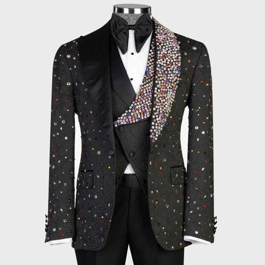 Glitter Diamond Customized Men Suits Trajes Para Hombre 3 Pieces Sets Male Prom Blazer Shawl...