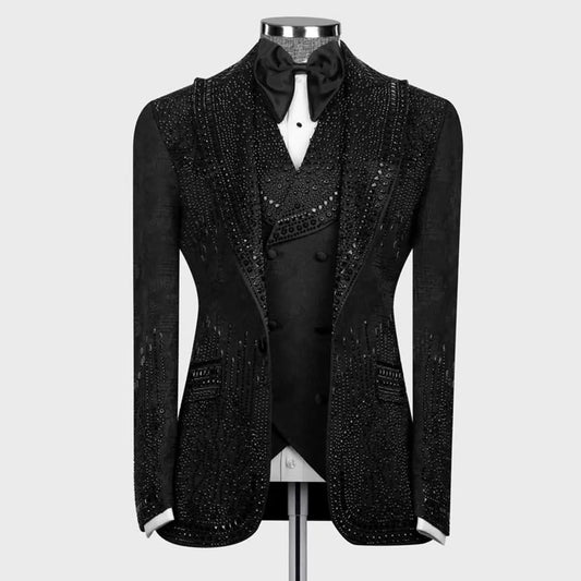 Customized Diamond Metal Embellished Men Suits 3 Pieces Sets Beadeds Party Prom Blazer Ropa Hombre Peaked Lapel Groom Tuxedos