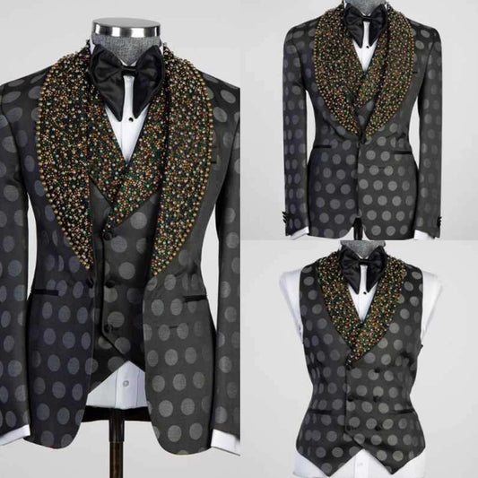 Luxury Jewelry Ornament Men Suits 3 Pieces Sets Wedding Groom Male Blazer Customized Party Tuxedos...