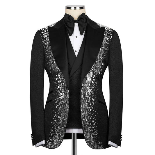 Customized Style Men Suits 3 Pieces Sets Diamond Male Dinner Prom Blazers Jacquard Groom Tuxedos...