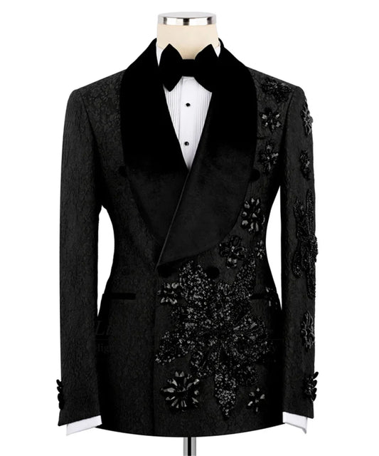 Fashion Jacqudrd Men Suits Hand-Embroidered Crystals Tuxedo Groom Wedding Customized 3 Pieces Sets Male Prom Blazers Ropa Hombre