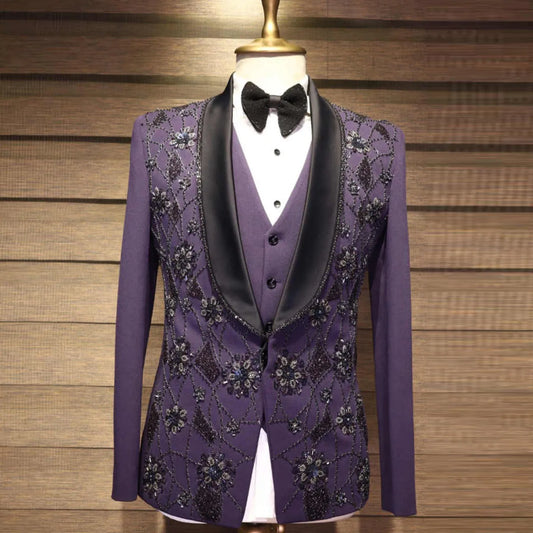Elegant Men Suit 3 Piece Appliques Coat Blazer Suit Slim Formal Wedding Tuxedos Groom Business Prom Party Customized