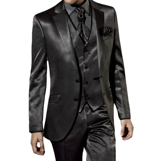 3 Piece Slim Fit Satin Men Formal Suits Custom Groom Wedding Tuxedo Black Satin Prom Men Suit Set