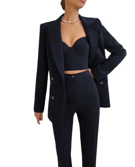 3 Pieces Women Suits Lapel Blazer Custom Made Blazer+Vest+Pants Office Lady Formal Single Breasted Party Prom Dress