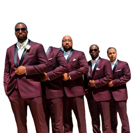 African Burgundy Men Suit for Wedding Black Shawl Lapel Groom Tuxedos 3 Pieces Jacket+Pants+Vest Best Man Suit Groomsmen Suit