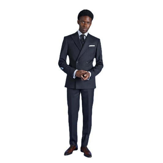 The classic black 3-piece men's suit features a peak lapel and is designed for high-end...