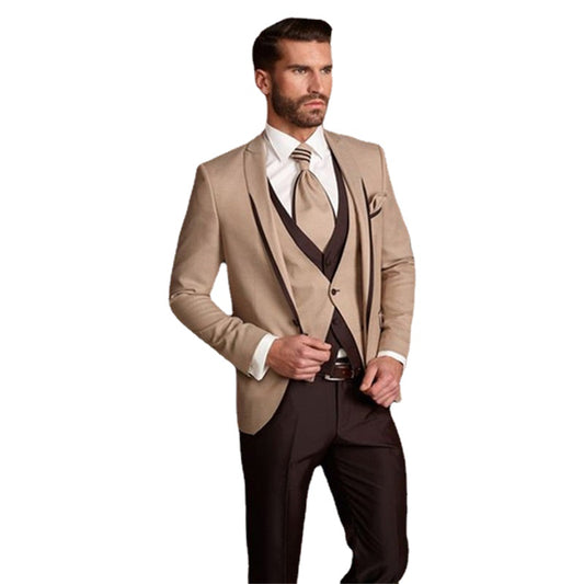 Classic Beige Brown Men Suits Set Groomsmen Groom Wedding Tuxedos Custom Made Costumes Hommes Formal Party Suit