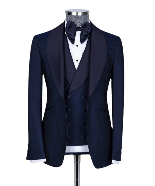 Elevate your special day with our Classic Men's Wedding Suit Set, featuring a stylish shawl...