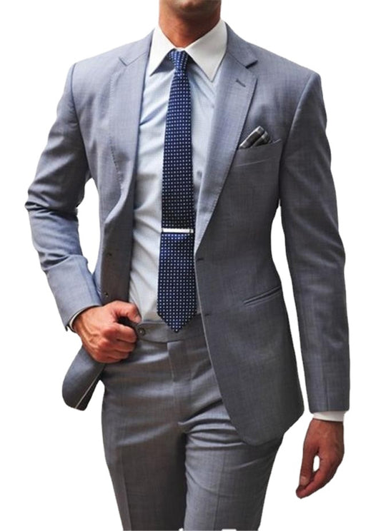 Classic One Button Men's Slim Fit Suit Gray Groom Ball Gown 2 Pieces Wedding Blazer (Jacket +Pants)
