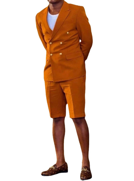 Custom Made Groomsmen Brown Groom Tuxedos Peak Lapel Men Suits 2 Pieces Wedding Bridegroom ((Jacket + Short Pants + Tie)