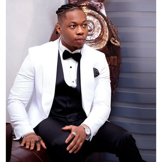 Elevate your formal wardrobe with our Customized Men's Suits, featuring an elegant white blazer paired...