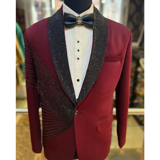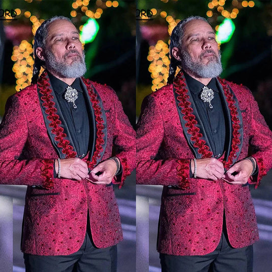 Introducing our Dark Red Crystal Beading Blazers Men’s Suit, a fashionable two-piece ensemble perfect for...