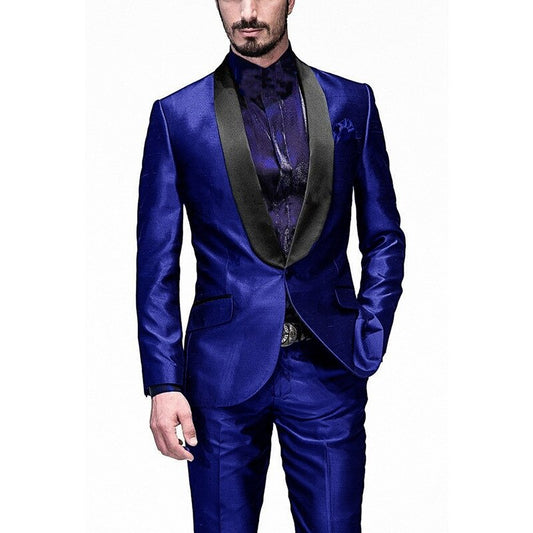 Design Men Suits Shiny Groom Tuxedos Shawl Black Lapel Groomsmen Wedding Best Man 2 Pieces (Jacket+Pants+Tie)