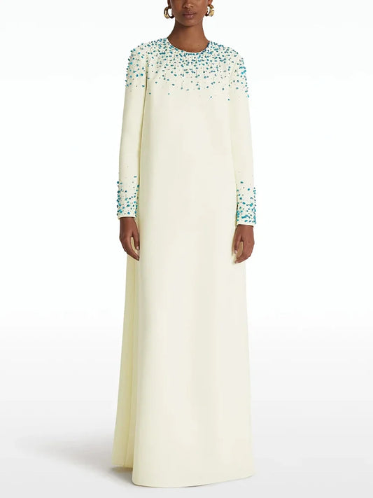 Designer Party Vestido Women's Beaded Loose Long Sleeved Long Maxi Dress