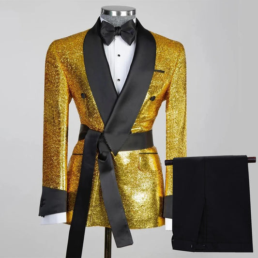 Glistening Gold 3-Piece Suit for Men - Standout Tuxedo Jacket, Pants, and Vest for Parties and Weddings