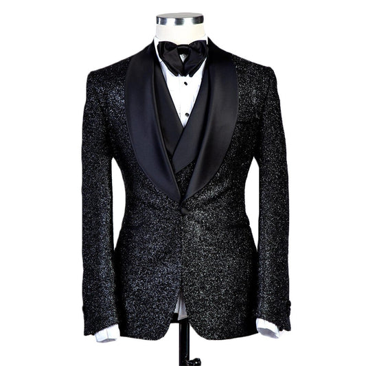 Glitter Black Sequins men Suits Groom Wear Wedding Blazer Tuxedos Formal Business Prom Pants Coat Jacket 3 Pieces