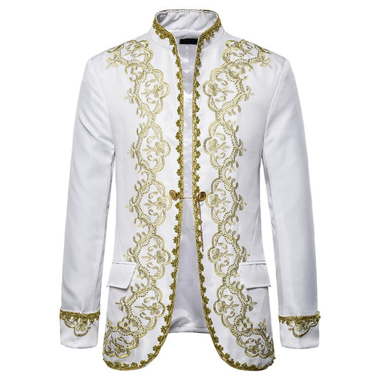 Gold Embroidery Blazer Jacket Men Baroque Style Palace Costume Homme Stage Black Dress Blazer Masculino