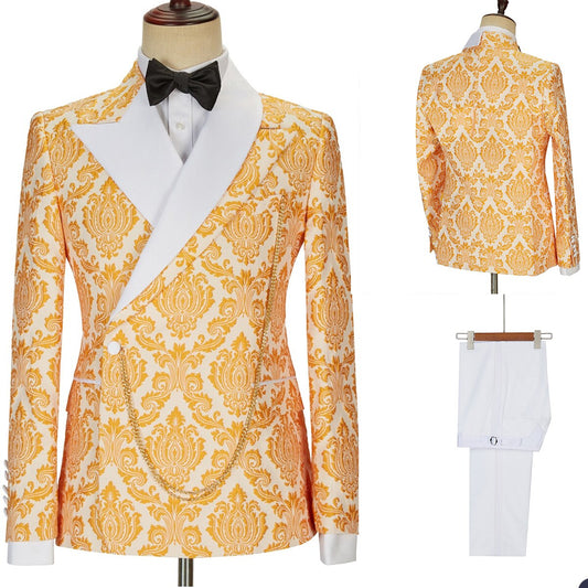 Gold Pattern Men Suits 2 Pieces Plus Size Custom Made Wedding Tuxedos For Business Formal Wear