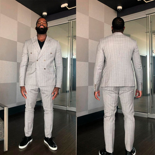 Gray Men Suit Tailor-Made 2 Pieces Blazer Pants Double Breasted Gentlemen Work Wear Formal Business Causal Party Tailored