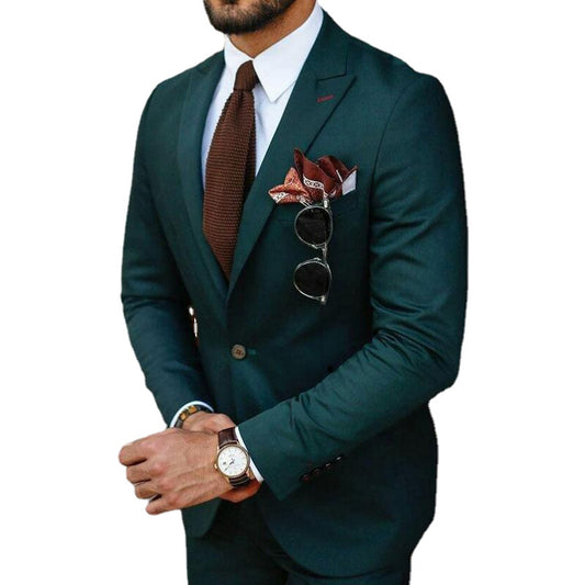 Green Business Men Suits 2 Pieces Set Wedding Groom Tuxedo Customize Groomsmen Attires (Jacket+Pants)