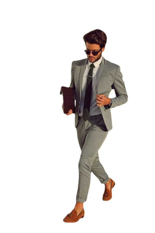 Light Gray men Pants Suit 2 Pieces Plus Size Groom Tuxedos Peaked Lapel Prom Party Blazer (Jacket+Pants)