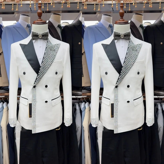 Luxurious Men Suits for Wedding Beading Pearls Shawl Lapel Blazer 2 Pieces Set Tuxedo Groom Coat Customized Jacket Pants