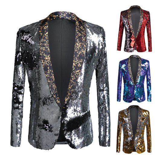 Men Shawl Lapel Blazer Designs Plus Sequins Suit Jacket DJ Club Stage Singer Clothes Nightclub Blazer Wedding Party Suit Jacket
