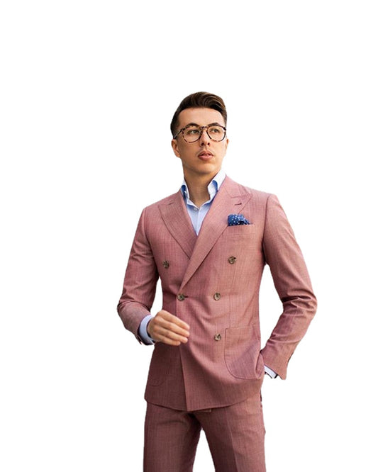 Men Suits Pink Peak Lapel Double Breasted Male Blazer Business Casual Wedding Tuxedo Suit Slim