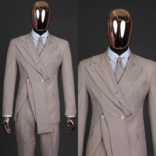 Men Suits Tailor-Made Tuxedo 2 Pieces Double Breasted Solid Color Tuxedo Jacket Overcoat Tailored Formal Prom