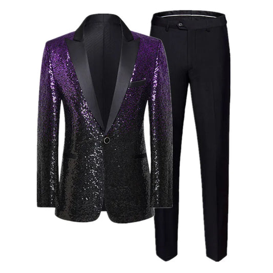 Men's Sequin Suit 2 Piece Men Bar KTV Stage Performance Dress Male Gradient Clothing