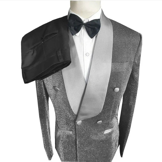 Men's Satin Double-breasted Two-piece Suit Elegant Man Suit for Wedding Fashion Suits Prom Dresses Full Male Formal Sets