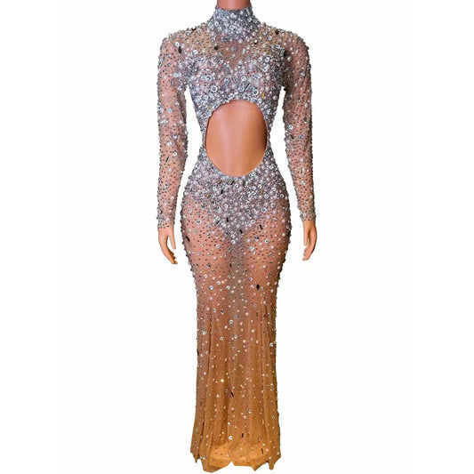 Sexy Celebrate Evening Wedding Prom Birthday Dress Sparkly Rhinestones Hollow Long Dress Photo Shoot Wear