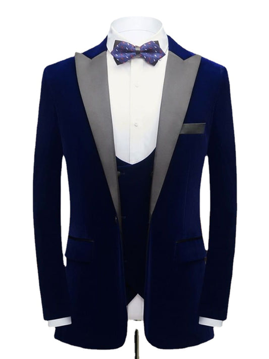 Blazer Sets Suits For Men Royal Blue Luxury Men's Velvet Jacket Tuxedo Man Full Social Sets Modern Homme Coat Oufits 3Pc