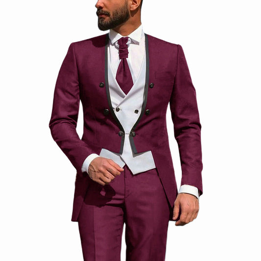 Blazer Sets Formal Dinner Party Tailcoat Burgundy Wedding Suits Groomsman Groom Suits Men's Tuxedo 3 Pieces