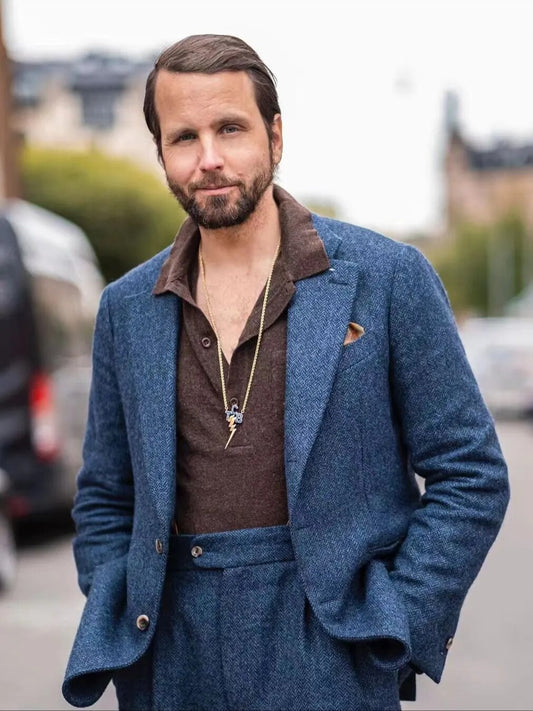 Blue Coat Pant Men Suit Luxury Wedding Man Jacket Autumn Winter Herringbone Pattern Gentleman Party Dresses 2 Piece(Blazer+Pant)