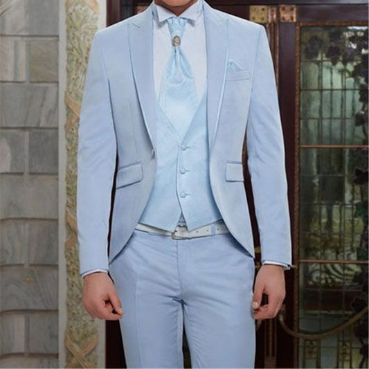 Blue Classic Men Suit Single Breasted Tailor-Made Tuxedo Three-Pieces Jacket Vest Pants Designer Formal Occasion Costume Made