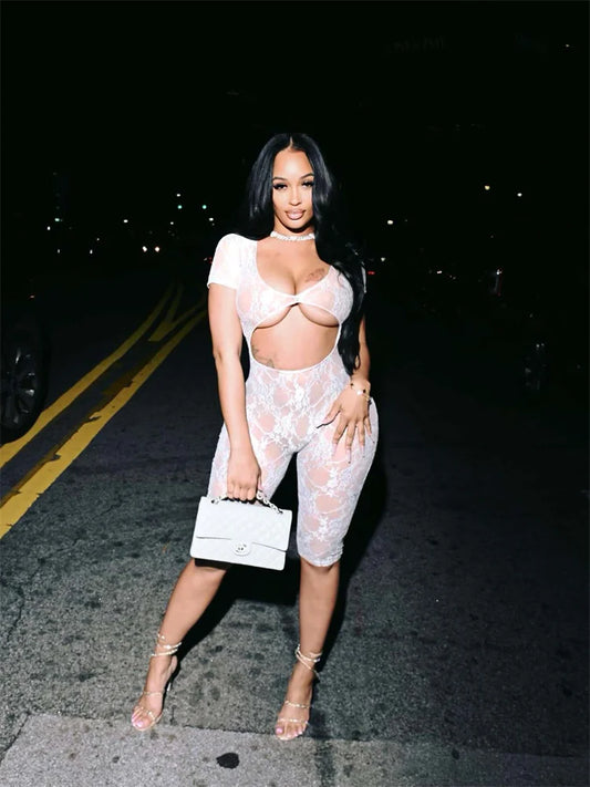 Casual Jumpsuit Women One-pieces Rompers Womens Summer Black Bodycon Lace See Though Romper Playsuits