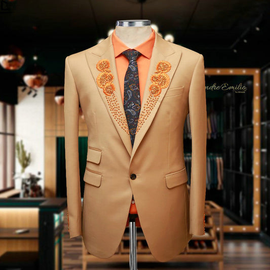 Elevate your formal wardrobe with our Champagne Beading Pearls Groom Wear. This sophisticated two-piece suit...