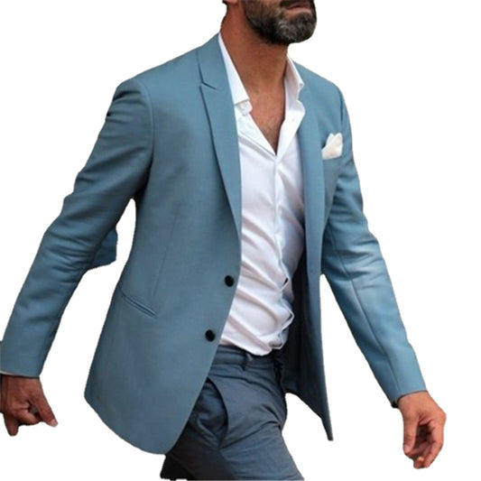 Light Blue Blazer Trousers Men Suits Sets 2Pcs(Jacket+Pants+Tie) Coat Designs Casual Wedding