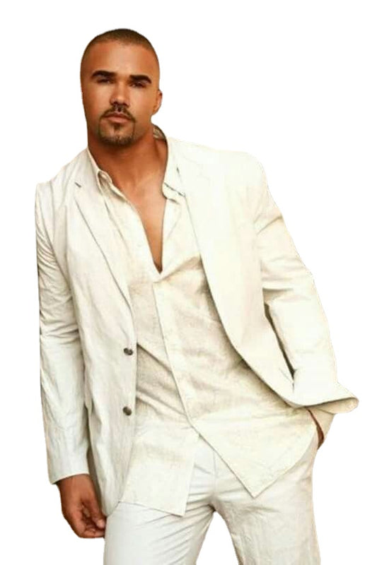 Ivory White Linen Summer Beach Wedding Suits Men Casual Best Man Groom Party Prom Suits Custom Made Street Wear Men Blazer