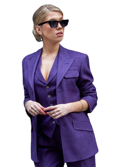 Purple Women Trousers Suits 2 Pieces Slim Fit High Waist Prom Evening Party Wear Blazer Sets