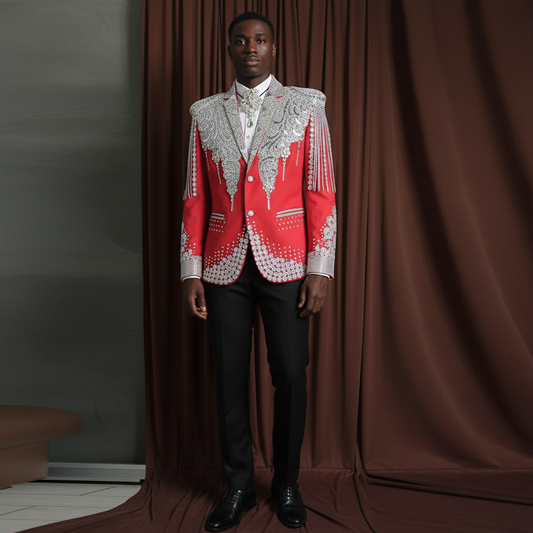 Elevate your formal wardrobe with this luxury diamond shawl-lapel men’s suit. The slim-fit, customized 2-piece...