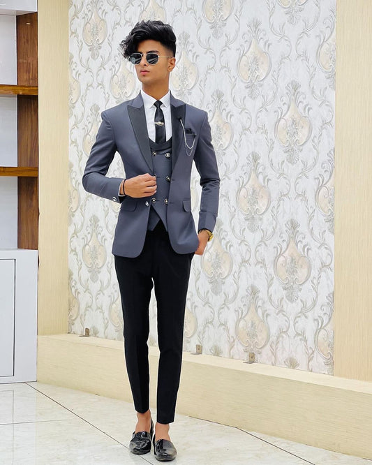 Luxury Man Suit For Wedding Gray Blazer Sets 3piece Slim Fit Custom Size Homme Tuxedo Prom Dress (Jacket+Pants+Vest)
