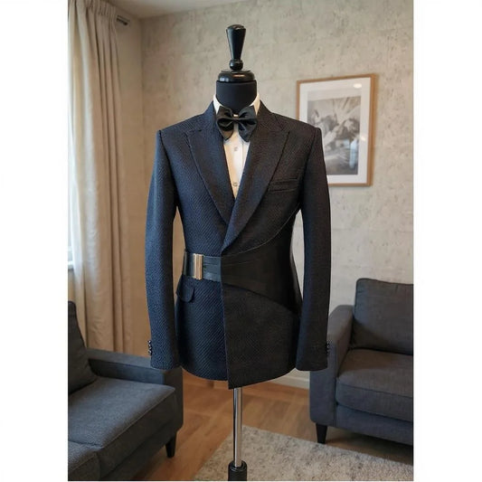Unique Wedding Tuxedo for Slim Fit Men Suits 2 Pcs Peaked Lapel with Buckle Party Groom Business Blazer Custom Jacket Pants