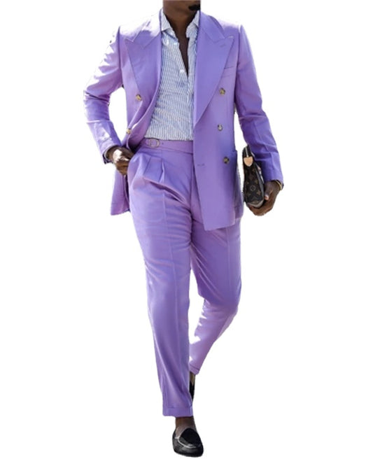 Elevate your formal look with this purple peak lapel men's suit, perfect for weddings and...