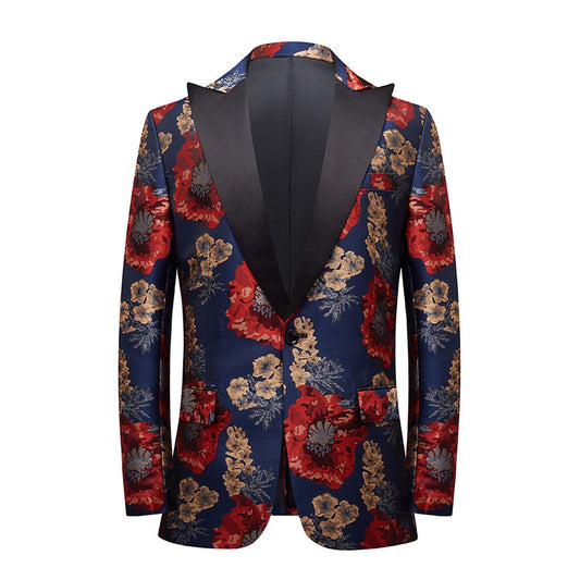 Flower Men Blazers Banquet Prom Slim Fit Wedding Tuxedo Suit Jackets Peaked Lapel Stage Nightclub Singer Host Dancer 1 Piece