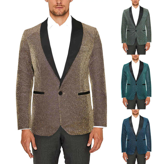 Men's Dazzling Sequined Slim Fit Blazer with Satin Lapel for Fashionable Events and Stage Performances