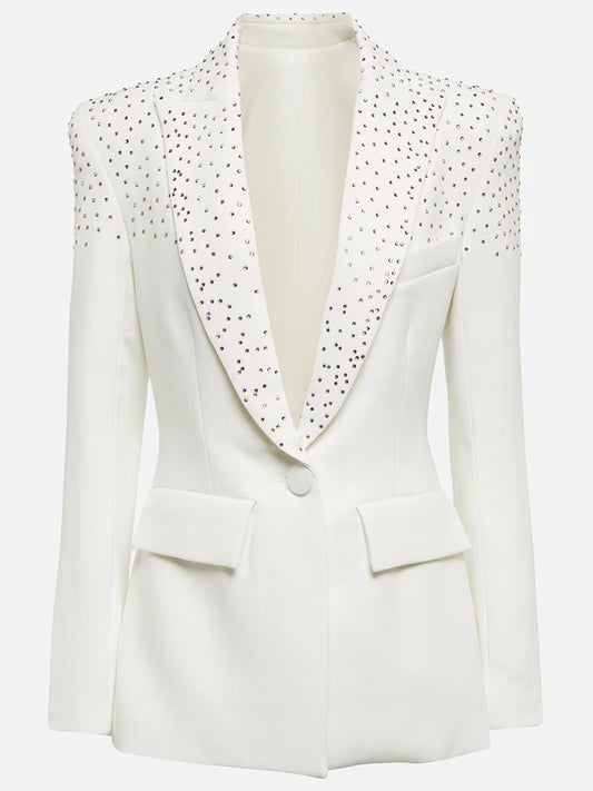Designer Jacket Women's Slim Fit Single Button Rhinestone Diamonds Beaded Blazer Coats