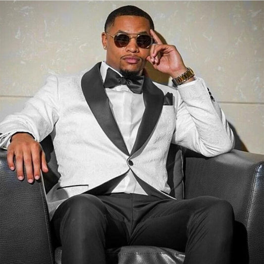 Floral Prom Men SuitS With Shawl Lapel Wedding Groom Tuxedos Slim Fit Blazer (Jacket+Burgundy Pants)
