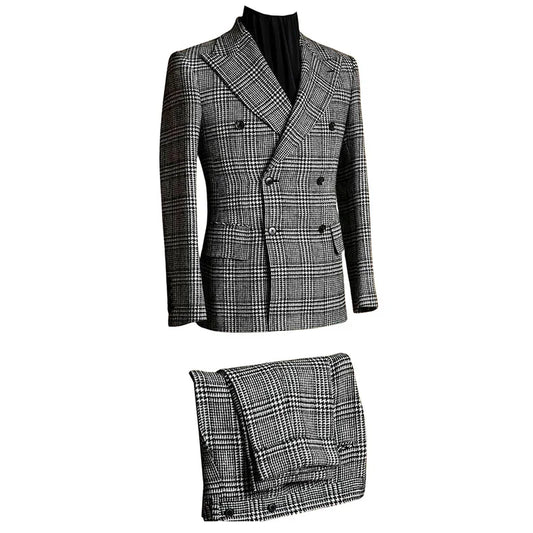 Men's Houndstooth Premium Double Breasted Buttons Tuxedos Peak Lapel Two-Piece Suit Daily Casual Wedding Dinner Business Party